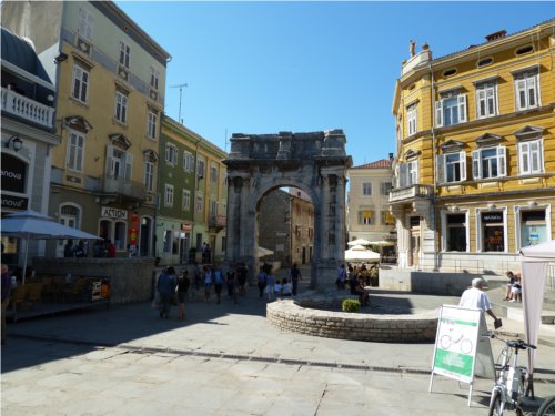 Mit dem Linienbus ging es heute nach Pula. Leider verloren wir schnell die Übersicht, wo wir uns befinden und so stiegen wir erst an der Endhaltestelle aus. Ob unser Ticket dafür ausgelegt war wußten wir nicht wirklich ,aber was sollten wir tun? Leider irrten wir auch von dort erstmal orientierungslos weiter. Weder im ZOB noch an der nächsten Tankstelle gab es einen Stadtplan für uns. Auch das Handy-Navi war keine Hilfe. Ohnen Internet braucht es wirklich ewig einen Sateliten zu finden. Erst recht, wenn man schon in der Bewegung ist. Doch die Strategie eher runter zu laufen, um das Meer zu finden, ging auf. Urplötzlich stehen wir vor der ersten Sehenswürdigkeit, dem Amphietheater. Im benachbartem Souvenir-Shop gab es dann auch die ersehnte Karte und die "Plan-Welt" hat uns wieder. Gott-sei-Dank.