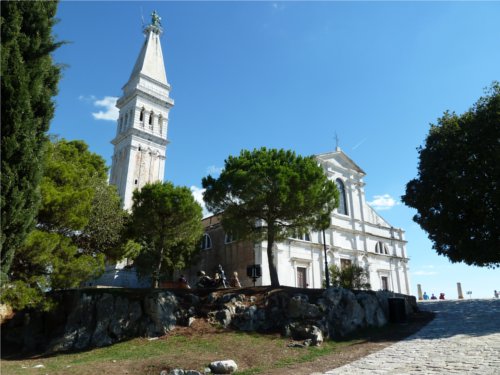 Nach dem turnismäßigen Einkauf wollten wir die Stadt besichtigen. Auf dem Pakrplatz stellten wir dann aber leider fest, dass wir kein Kleingeld hatten und der Automat natürlich keine Scheine annahm (welch ein Wunder :-)). Was also tun? Wir entschieden uns gegen das Schwarzparken, denn dass ist uns echt zu unsicher. Also fuhren wir zurück zum Einkaufzentum und kauften noch ein paar Alu-Schalen für unseren Grill. Mit dem neu errungenen Kleingeld gehtg es zurück in die Innenstadt zu dem schon bekannten Parkplatz und zu Fuß weiter in die kuschelige Altstadt von Rovinj. Zu bieten hat die Stadt speziell dass typische mediterane Lebensgefühl. Kunst und Kirchen sind an diesem Tag nicht so ganz unser Ding und so tanken wir mit Eis und Cappochino schnell noch ein wenig mediterane Lebensweise und weiter geht es für uns.